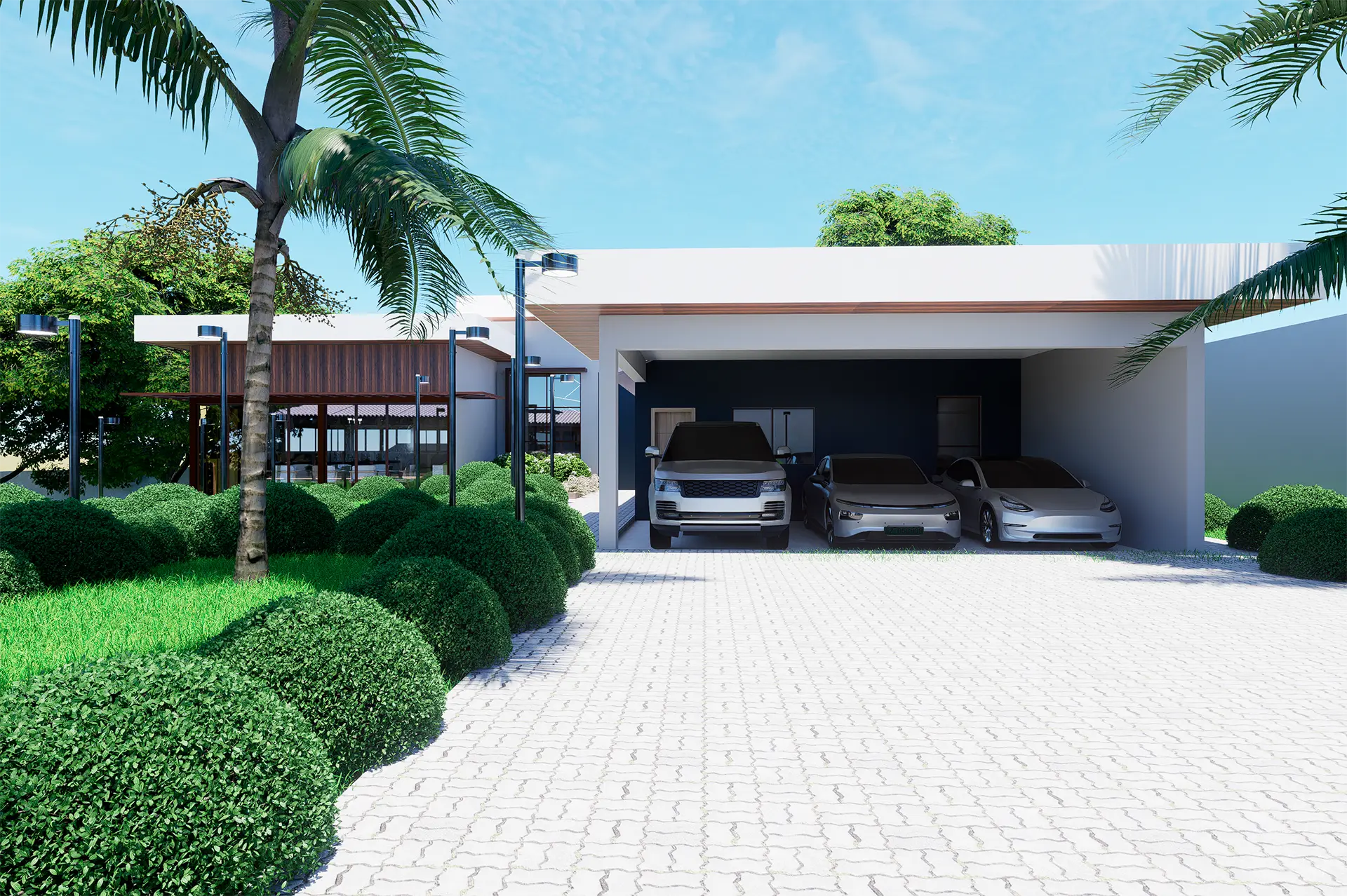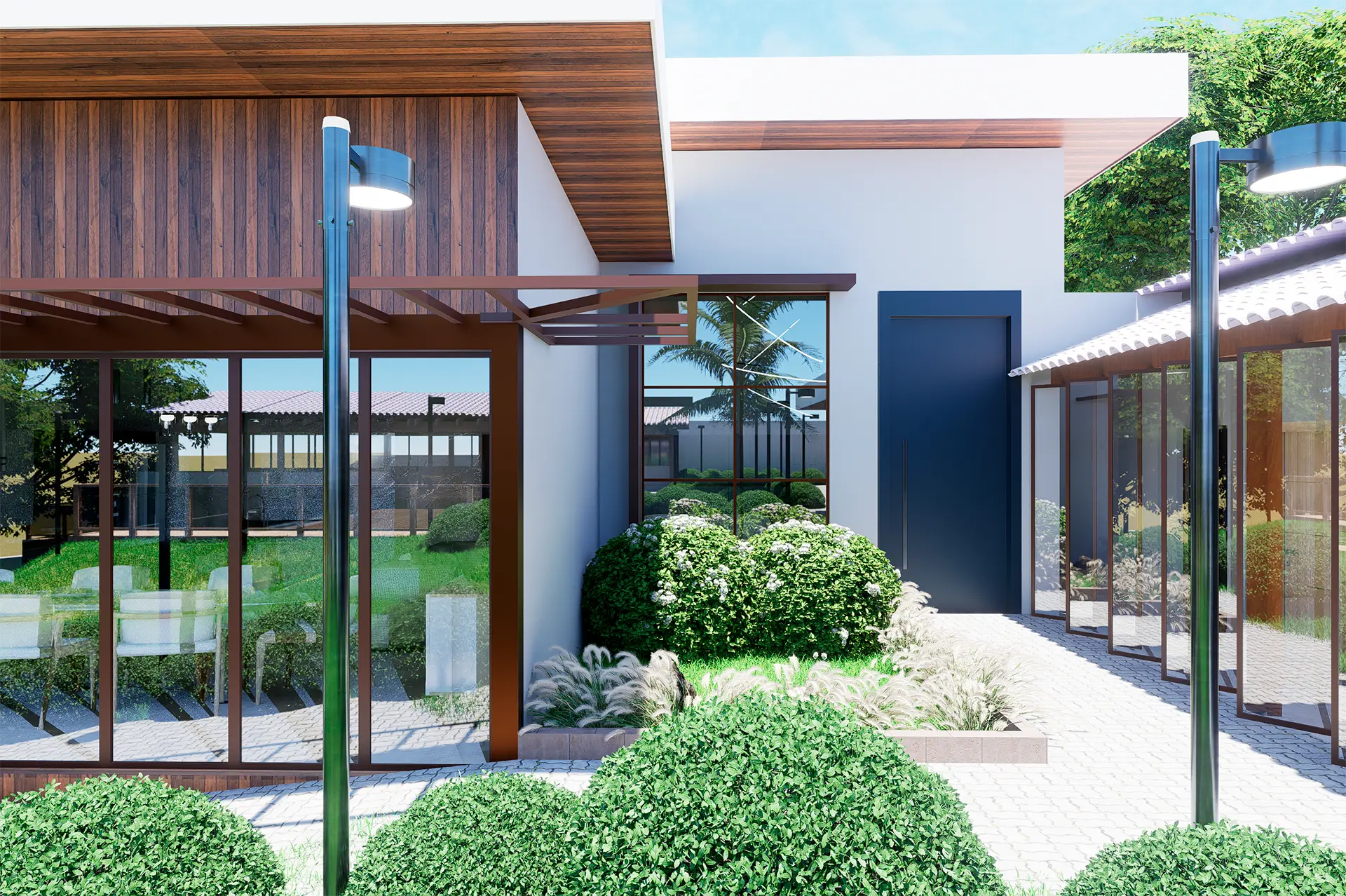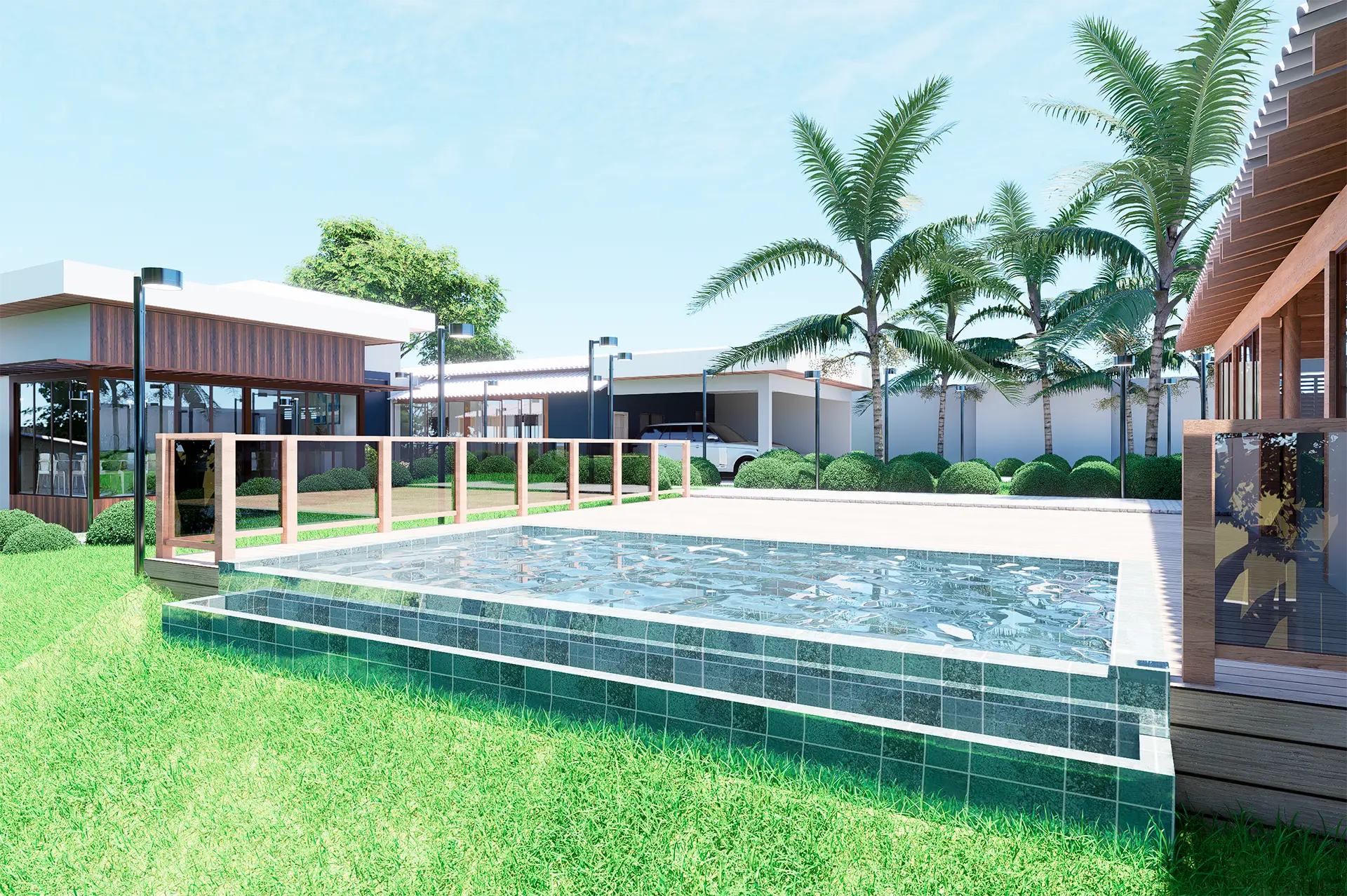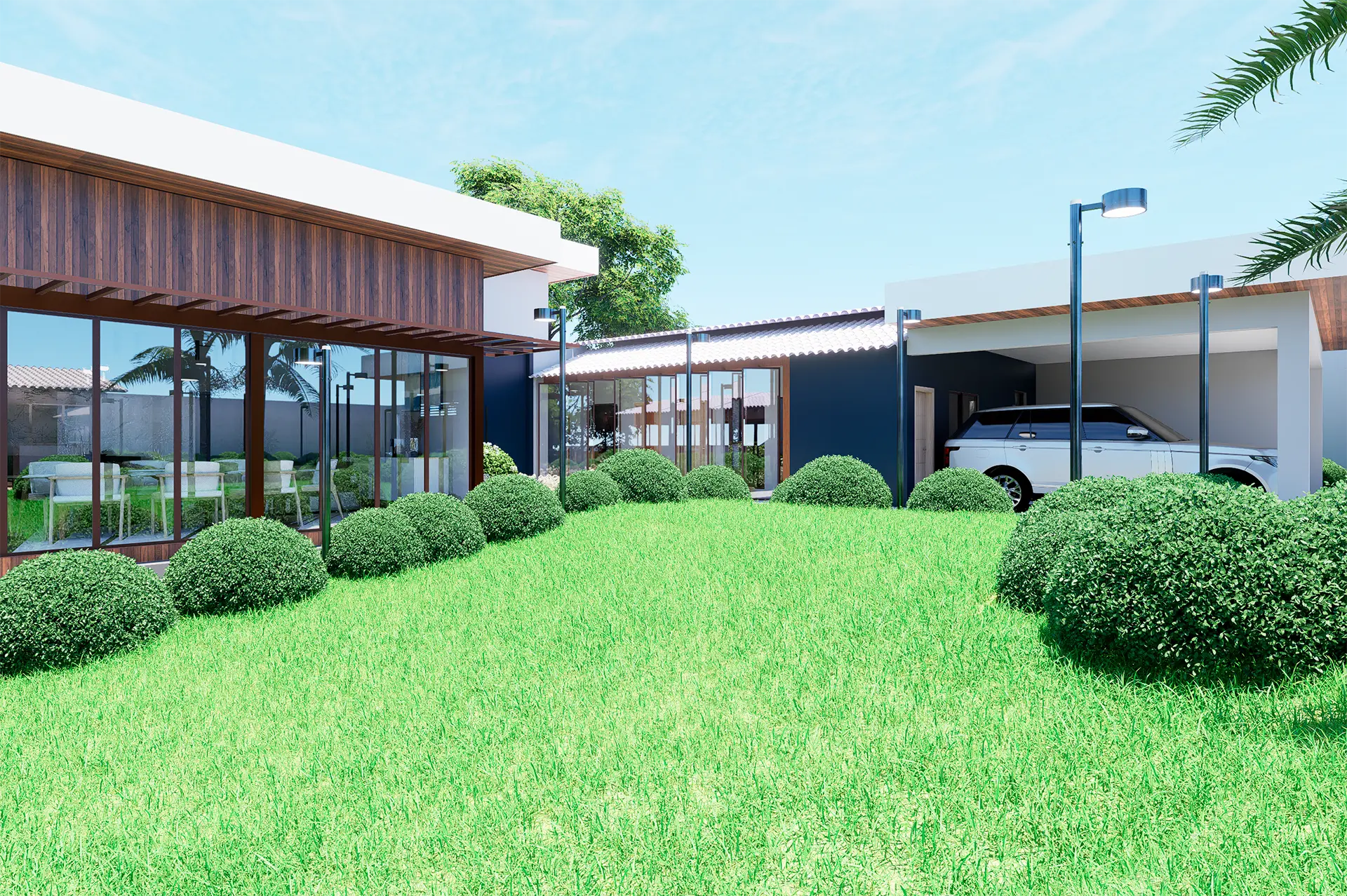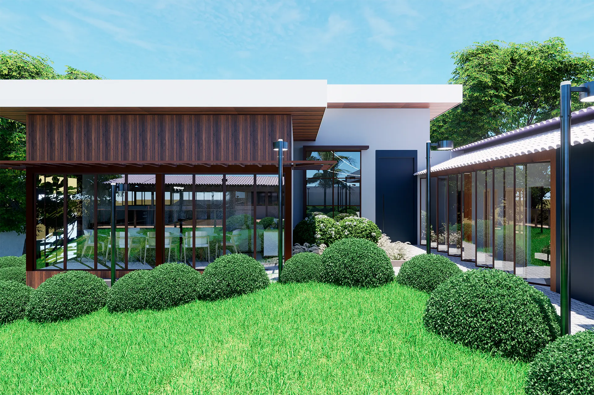 O projeto da Casa AG teve como foco a ampliação da edificação e a requalificação completa das áreas externas, criando um espaço de lazer integrado e sofisticado. A nova proposta valoriza a convivência e o bem-estar, com a inserção de piscina, áreas ajardinadas e ambientes de permanência que conectam a residência à natureza.